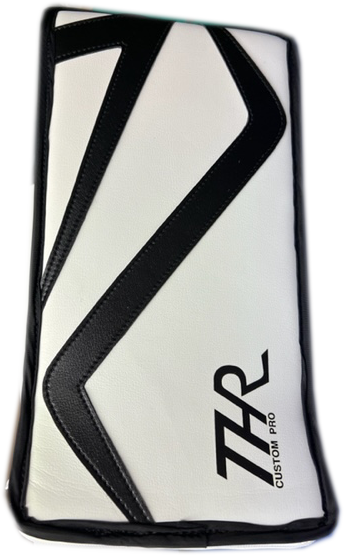 2022 November - Switched to a custom blocker made for him by Toronto Hockey Repair, nothing wrong with the Simmon but it wasn't going to last forever and the trapper was getting upgraded so... This is a little bigger, a SR model but built with an Intermediate Palm which can be swapped out as he gets older/ larger.