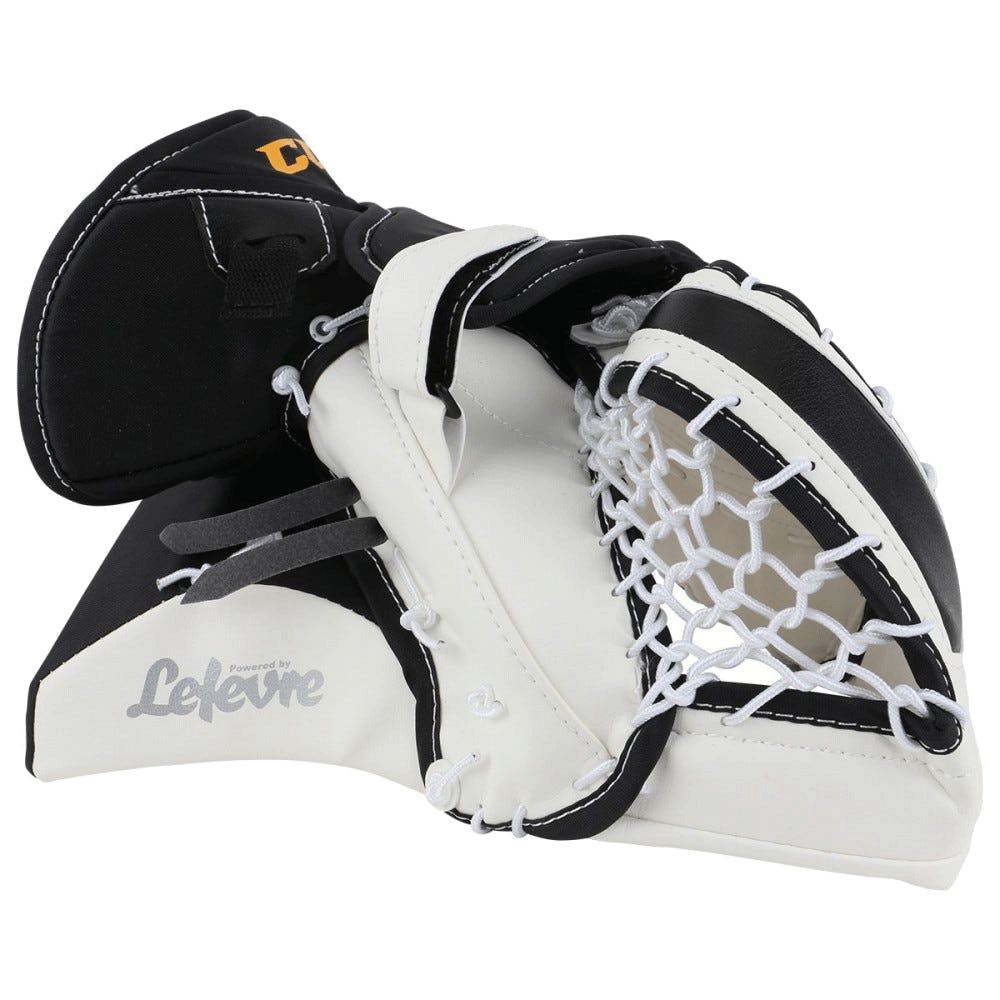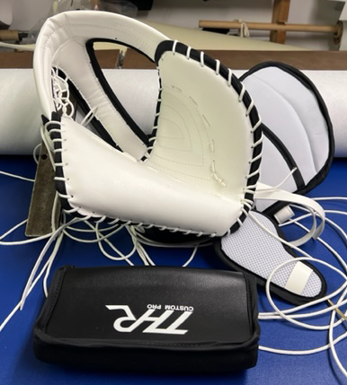 2022-23: Likes the 2 piece, tryed out a trapper in Toronto this past summer and was willing to retire the old floppy Beebok for a new glove they build. THR Custom Pro SR Trapper... it was a easy transition from the other SR glove he's been using for years.