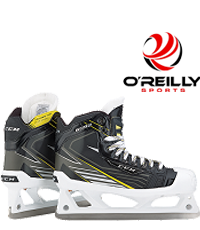 Notes: Goalie skates have more padding to absorb those shots to the feet. They also have more blade on the ice for stability, the players blades are more curved up in the front and back for better cornering. Have them sharpened often, they take a lot of abuse. Make sure they are cut with a goalie profile (mostly flat, little rocker) & start with about a 5/8 hollow. Goalie skate typically come with a goalie profile but should be reprofiled if they start to lose the flatness on the bottom, depending on how othen they are sharpened you are looking at every year or so, this typically cost an extra $30. If you ask for a goalie profile or a 5/8" hollow and they look at you funny take your skates and leave, don't let these people touch them ever.